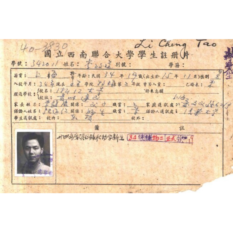 1945年,李政道作为北京大学学生注册,正式转学至西南联合大学物理系读大二。在西南联大,时任物理系主任吴大猷赏识这个思维敏捷、勤奋好学的学生,1946年吴大猷[yóu]推荐还在大学二年级就读的李政道赴美国学习。
